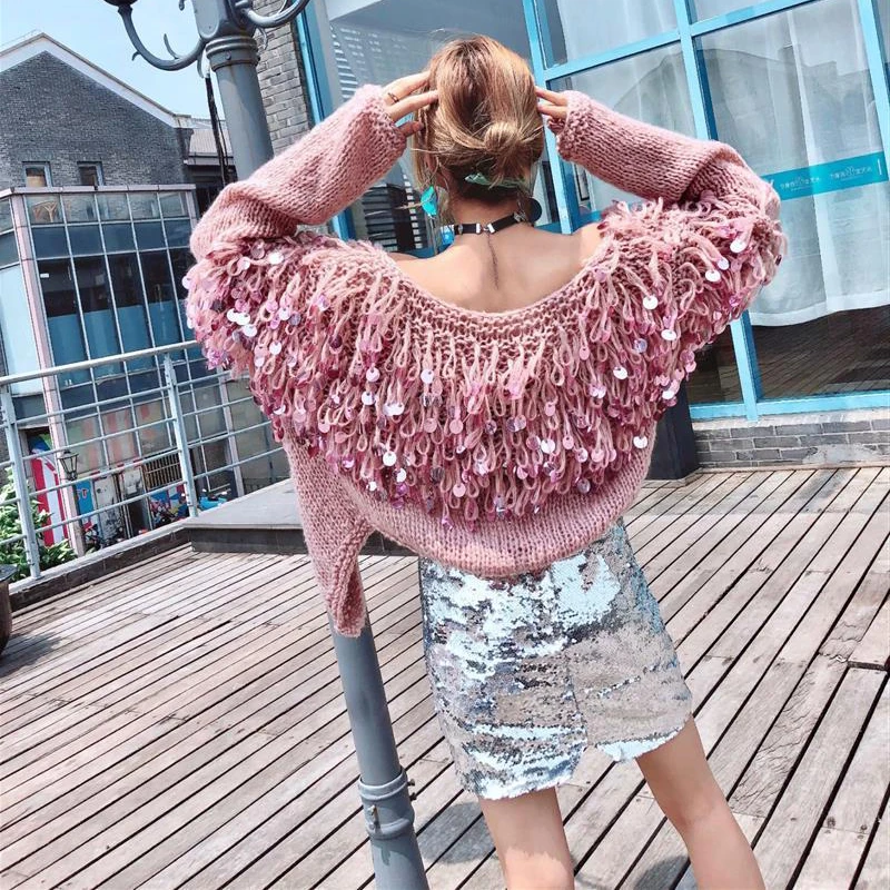 Handmade Knitted Sweaters Oversized Sequin Cardigan Sweater Coat Women